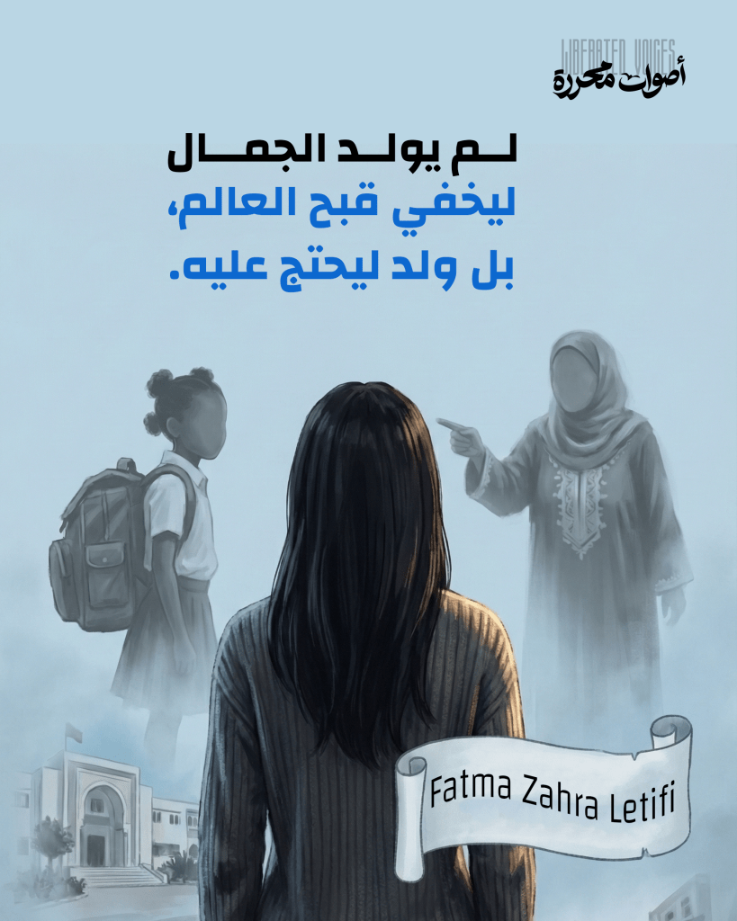أنا فاطمة الزهراء … قريتي تحضن خمسين عائلة معظمهم أقربائي- أو خيّلت لي قرابة مؤكدة معهم – ومدرسة واحدة يرفرف فوقها علم البلاد الذي لولاه لما كان لنا أيّ ارتباط بما يحدث بعيدا عنا بأربعة كيلومترات أو خمسة.